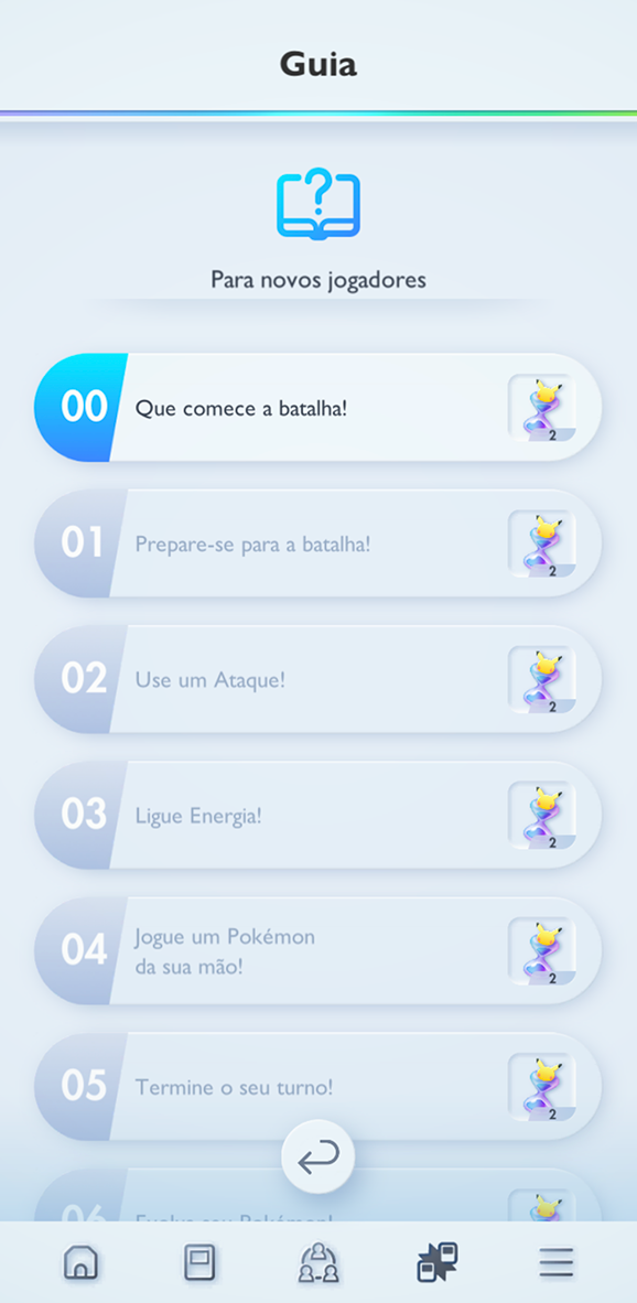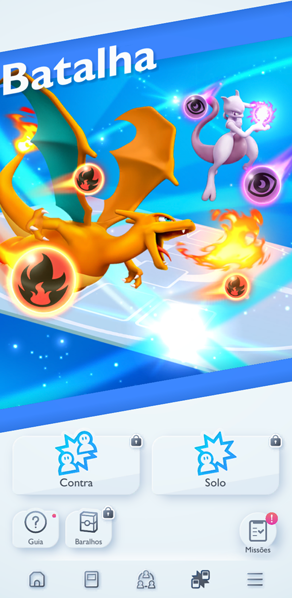 Assim que desbloqueadas, você terá acesso a uma variedade de tarefas que mostram como as batalhas funcionam no Pokémon Estampas Ilustradas Pocket. Se você é um jogador mais experiente do Pokémon Estampas Ilustradas, essas tarefas iniciais não serão difíceis, e se o Pokémon Estampas Ilustradas Pocket é a sua primeira experiência com batalhas no estilo do Pokémon Estampas Ilustradas, você vai pegar o jeito logo. Assim que você terminar as tarefas, estará com tudo pronto para participar de batalhas solo e contra usando baralhos pré-construídos e suas próprias criações!