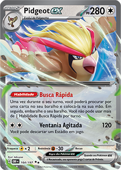 Jogar três Pidgey pode parecer um exagero, mas como queremos que Pidgey assuma a liderança logo de cara com Chamar a Família, acho importante contar sempre com uma opção reserva no Banco. Isso significa que precisamos ter acesso a pelo menos dois Pidgey, e como regra geral de construção de baralho, gosto de contar com uma cópia extra de cartas que esperamos usar em todos os jogos. Caso o primeiro Pidgey sobreviva, você poderá montar dois Pidgeot ex mais adiante, o que é difícil de enfrentar.