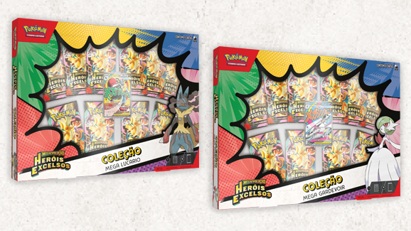 Pokémon de Treinador e Pokémon ex Tera Estelares unem forças com Pokémon ex de Megaevolução já conhecidos ou recém-descobertos na mais recente expansão, Megaevolução — Heróis Excelsos, que chega em 30 de janeiro de 2026. Você vai encontrar pacotes de booster dessa expansão especial em vários produtos que serão lançados nos próximos meses. Continue lendo para descobrir mais sobre essas coleções e saber quando cada uma será lançada.