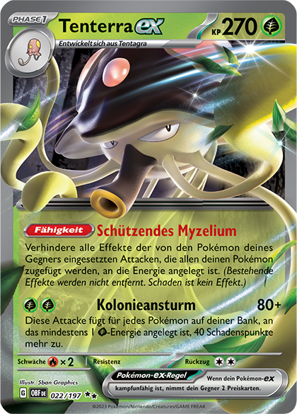 Ich habe noch einige weitere nützliche Pflanzen-Pokémon hinzugefügt, Tenterra und Tenterra-ex. Tenterras Fähigkeit Schleimpilzkolonie verhindert, dass dein Gegner Trainerkarten oder Fähigkeiten verwendet, um Karten aus dem Ablagestapel auf seine Hand zu bringen. Dies ist besonders gut gegen Decks wie Monetigo-ex und Furienblitz-ex, die Hochwertiger Energie-Zugewinn oder Nachttrage verwenden. Die Fähigkeit Schützendes Myzelium von Tenterra-ex verhindert alle Effekte der Attacken deines Gegners (außer Schaden), die deinem Pokémon mit angelegter Energie zugefügt werden. Diese Tenterra verleihen diesem Deck wirklich ein paar zusätzliche Möglichkeiten, die Strategien deines Gegners zu durchkreuzen. Sie können sogar verhindern, dass Karten wie Katapuldra-ex mit der Attacke Phantomsturzflug Schadensmarken auf deine Pokémon legen.