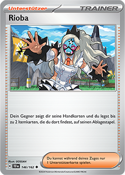 Um eine Synergie mit dem Effekt zu erzielen, Karten aus der Hand deines Gegners abzulegen, habe ich mich entschieden, auch zwei Kopien von Rioba einzubauen. Damit kannst du wichtige Itemkarten wie Hochwertiger Energie-Zugewinn und Sonderbonbon aus der Hand deines Gegners ins Visier nehmen. Mit diesem Deck wirst du in der Regel mit Preiskarten im Rückstand liegen, was Konterfänger zu einer sehr starken Karte macht. Denn damit kannst du ein gegnerisches Pokémon in die Aktive Position bringen, das nicht angreifen kann, und es dort festsetzen, indem du die Karten aus der Hand deines Gegners entfernst, mit denen es sich sonst zurückzuziehen könnte.
