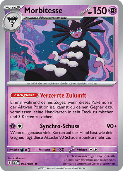 Das Deck spielen: Verwirkliche mit diesem Deck und zahlreichen Attacken, die sowohl Hand als auch Spielbrett stören, deinen Traum, ein schauriger Poltergeist zu werden. Zwirrfinst und Pumpdjinns Attacken Schattenbindung und Kürbisschreck hindern das Verteidigende Pokémon daran, sich zurückzuziehen. Pumpdjinns Fähigkeit Kürbisschreck wirft zwei zufällige Karten von der Hand deines Gegners ab, wenn es kampfunfähig wird. Morbitesse’ Fähigkeit Verzerrte Zukunft kann deinen Gegner zwingen, seine Hand in sein Deck zu mischen und 3 Karten zu ziehen. Befehl vom Boss und Etta tauschen Pokémon auf der Seite deines Gegners aus. Es genügt zu sagen, dass dieses Deck das Board in eine morbide Mischung verwandelt.