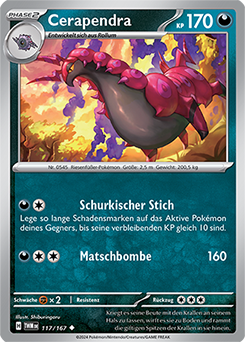 Zwirrfinsts Fähigkeit Verfluchte Explosion kann dazu führen, dass dein Gegner vom Pech verfolgt wird, nachdem du 13 Schadensmarken auf eines seiner Pokémon legst. Zwirrfinst wird kampfunfähig, wenn es diese Fähigkeit einsetzt, aber dank Nachttrage kann es deinen Gegner erneut heimsuchen.