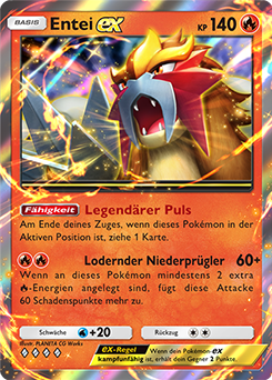 Beginne den Kampf mit Entei-ex, um den anfänglichen Schaden einzustecken. Wenn sich dieses Pokémon in der Aktiven Position befindet, kannst du außerdem dank seiner Fähigkeit Legendärer Puls am Ende jedes Zuges eine Karte ziehen. In den meisten Kämpfen sollte es dir zudem möglich sein, zwei ![]()