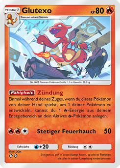 -Energiebeschleunigung in diesem Deck ist Glutexos Fähigkeit Zündung: Wenn du Glutexo von deiner Hand spielst, um eines deiner Pokémon zu entwickeln, kannst du eine