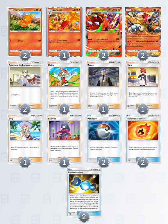 -Energie aus deinem Ablagestapel an dein Aktives Pokémon anzulegen. Aus diesem Grund ist sie eine vielseitige Ergänzung für dieses Deck. Sowohl die Attacke von Lohgock als auch die von Mega-Lohgock-ex erfordert, dass du eine an das Pokémon angelegte