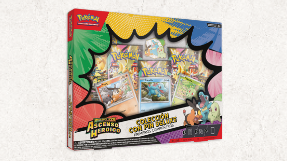 Colección con Pin Deluxe Primeros Compañeros de Megaevolución-Ascenso Heroico de JCC Pokémon