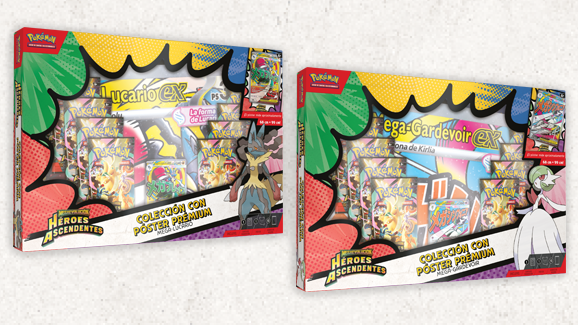 Con potentes ataques y enormes PS, ¡Mega-Lucario ex y Mega-Gardevoir ex traspasan todos los límites del combate! Une tus fuerzas a las de uno de estos poderosos Pokémon ex Megaevolución, que llegan en forma de carta holográfica de promoción con ilustración expandida, y busca muchos más Pokémon en la montaña de 10 sobres de mejora de Megaevolución-Héroes Ascendentes que vienen incluidos. Además, conseguirás un póster de gran tamaño de Mega-Lucario o de Mega-Gardevoir y otros Pokémon destacados de esta expansión.