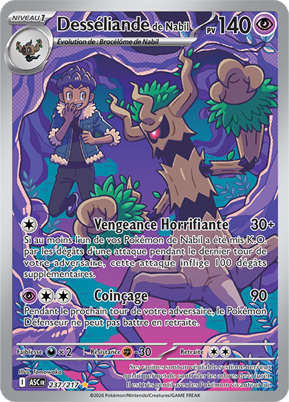 Si vous avez un deck contenant des Pokémon de Nabil, cette carte est faite pour vous. Desséliande de Nabil se venge lorsque l’un de vos Pokémon de Nabil est mis K.O, infligeant 130 dégâts pour seulement