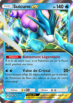 Une fois sur le Poste Actif, Suicune-ex vous fait pleinement profiter de son talent Battement Légendaire qui vous permet de piocher une carte à la fin de votre tour si Suicune-ex est votre Pokémon Actif. Cela augmente vos chances d’obtenir les cartes dont vous avez besoin pour remplir votre Banc.