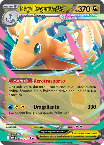 La nuova espansione del Gioco di Carte Collezionabili Pokémon, Megaevoluzione - Ascesa Eroica, sarà disponibile nel Gioco di Carte Collezionabili Pokémon Live giovedì 29 gennaio 2026 alle 17:00 (UTC)! Puoi divertirti con una varietà di nuovi e straordinari Pokémon-ex Megaevoluzione, tra cui Mega Dragonite-ex, prima di mescolare le carte dal vivo. Tante carte amatissime dai fan, come Zoroark-ex di N e Fezandipiti-ex, tornano con nuove illustrazioni: un’occasione perfetta per impreziosire il tuo mazzo preferito e mostrare il tuo stile.