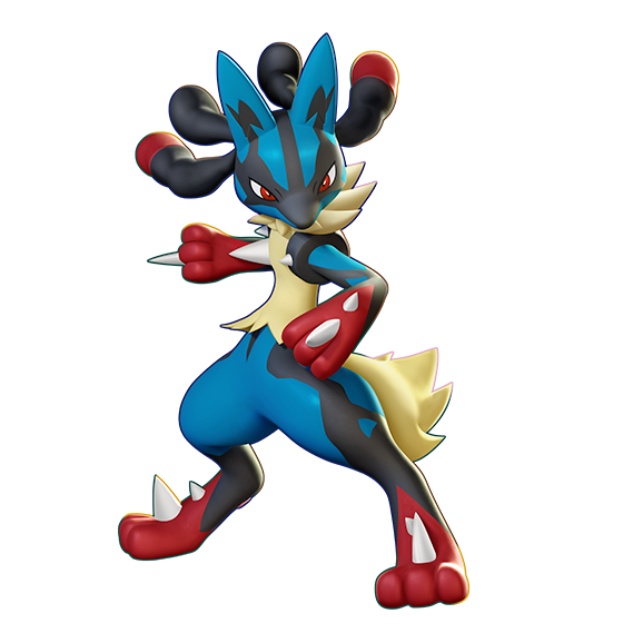 Charge up power and deliver devastating blows to your opponents with Mega Lucario in Pokémon UNITE. The Aura Pokémon begins each match as Lucario, and once it uses its Unite Move, it Mega Evolves! The Fighting- and Steel-type Pokémon builds power by dealing repeated blows to its opponents—and you can now add this Melee All-Rounder’s license to your collection.