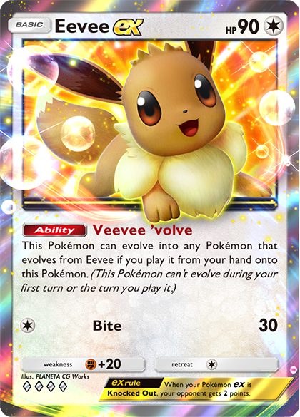 Game plan: This deck benefits from being flexible, meaning your focus isn’t strictly around setting up with a specific Pokémon in mind—Eevee and each of the Evolution Pokémon included have roles to play. Wisdom of Sea and Sky’s Eevee can put a random Pokémon in your deck into your hand with its Find a Friend move, and with some luck it might even help you find your Stage 1 Pokémon promptly. Eevee ex gives you the potential to fill the battlefield with even more of Eevee’s Evolutions with its Veevee ’volve Ability, and it can attack with Bite in a pinch.