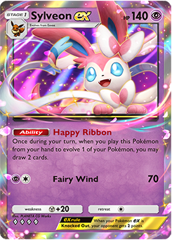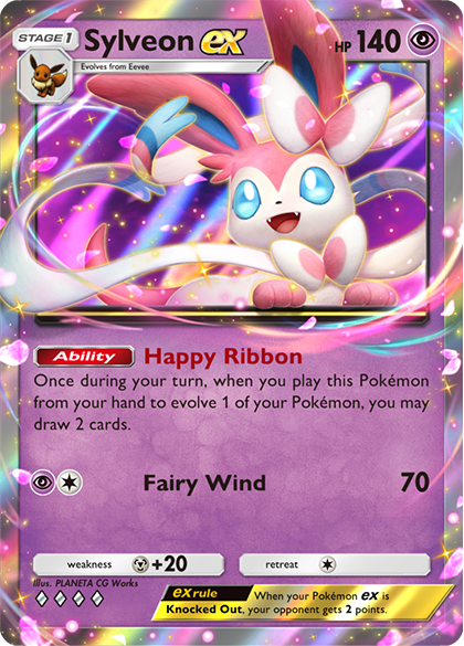 Sylveon ex has recently become a popular choice in competitive decks for its Happy Ribbon Ability, which allows you to draw two cards once during your turn when you play Sylveon ex from your hand to Evolve one of your Pokémon. Coupled with Eevee’s Find a Friend, Happy Ribbon will draw through your deck quickly, amplifying your options for what to do next.
